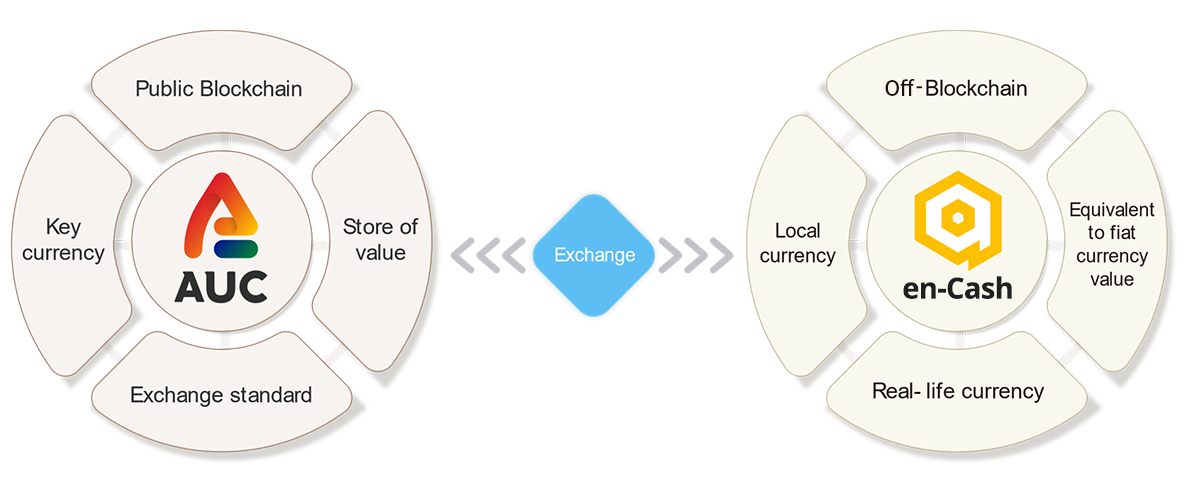 AUC and en-Cash can be exchanged on the Digital Asset exchange.