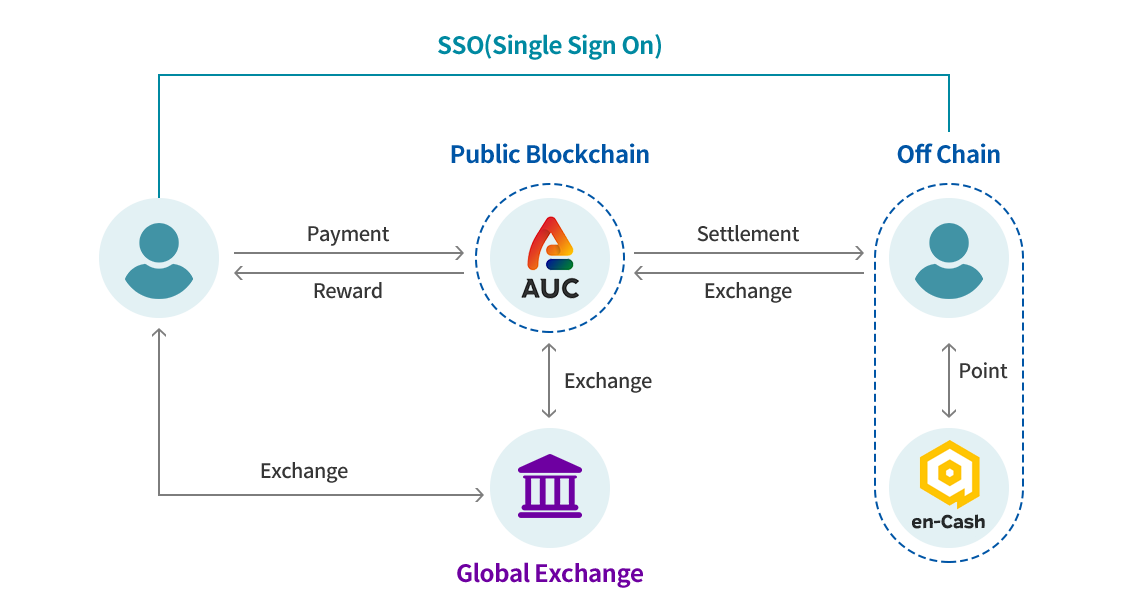 The en-Cash Digital Point is an Off-Chain, but there is no risk of modulation. The AUC project establishes the same level of security environment as major banks in Korea for risk management such as tampering or fraud. It has the Fraud Detection function to detect incidents during encryption and payment.